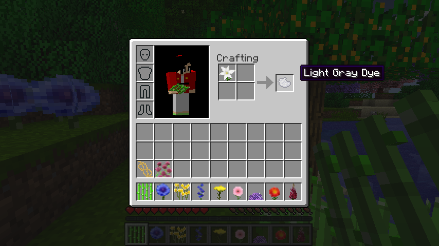 花やトーチ、チェストや半ブロックといった特殊な形のブロックは染めることができません。