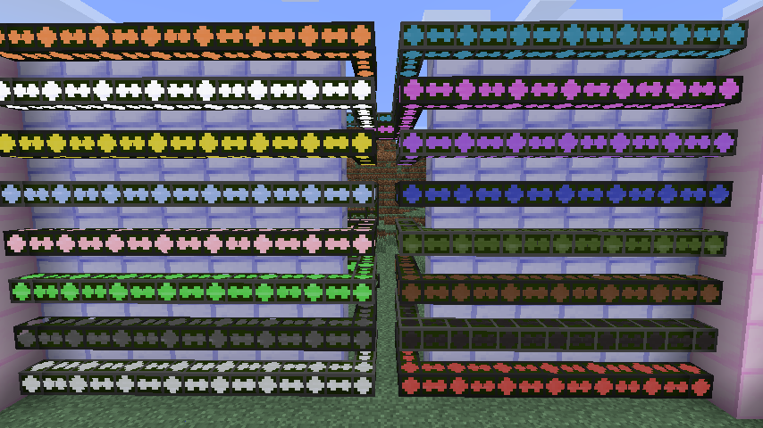 染めることができるのは普通の真四角な形のブロックだけとなっているようで、ガラスや氷、重ねた半ブロックなどは染色可能です。