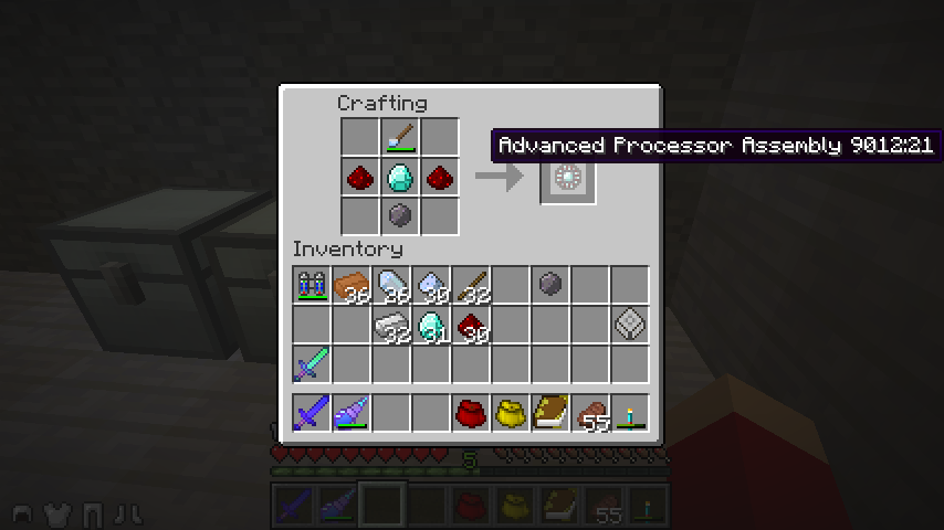クォーツナイフ、ダイヤモンド、シリコン、レッドストーン*2で上級プロセッサアセンブリ(Advanced Processor Assembly)。
