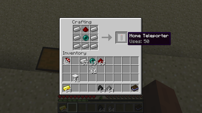 自宅テレポータ(Home Teleporter)は鉄インゴット*7、レッドストーン、エンダーパール。