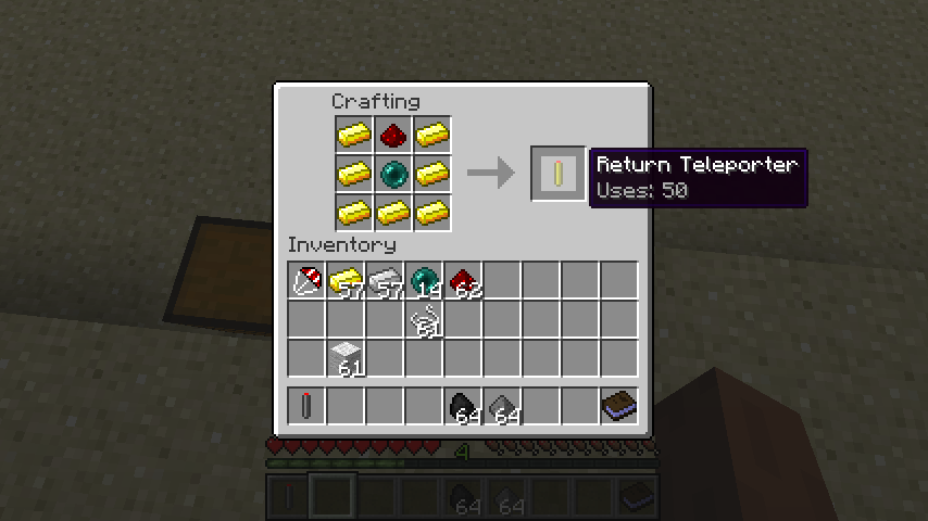 帰還テレポータ(Return Teleporter)は金インゴット*7、レッドストーン、エンダーパール。