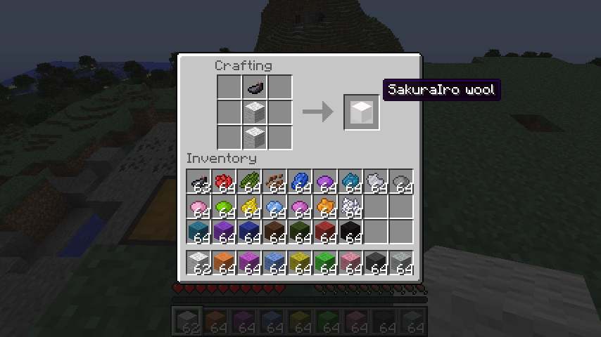 このように、同じ色の羊毛*2+染料で、和的な名前の付いたブロックが作成できます。