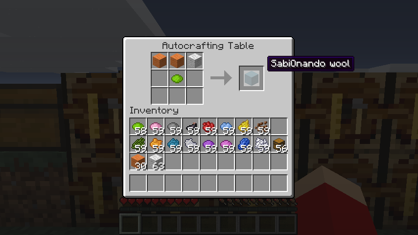 羊毛の色を追加するMODとしては、フルカラー羊毛という最強を超えた反則の羊毛があるのですが、こちらは色を変えるのにインベントリを開いて色を指定してという手順を経る必要があるため少々面倒です。