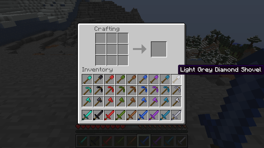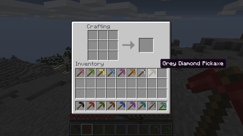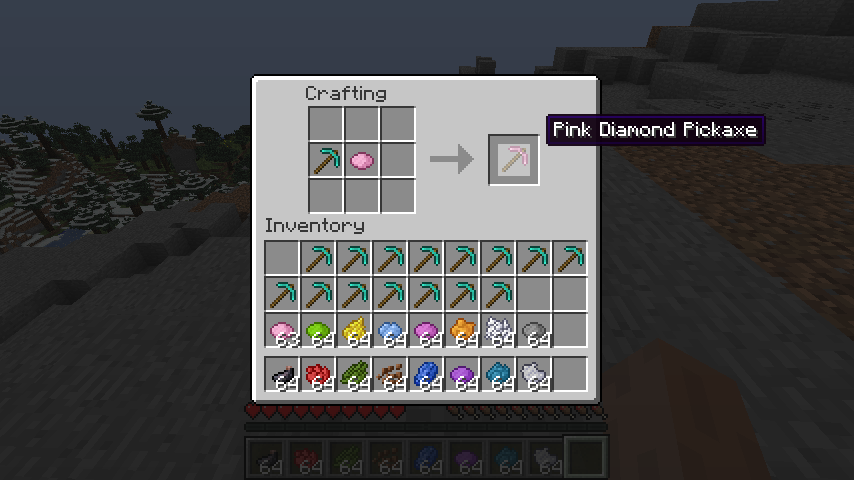 ダイヤモンドつるはし+染料で各色のダイヤモンドつるはしになります。