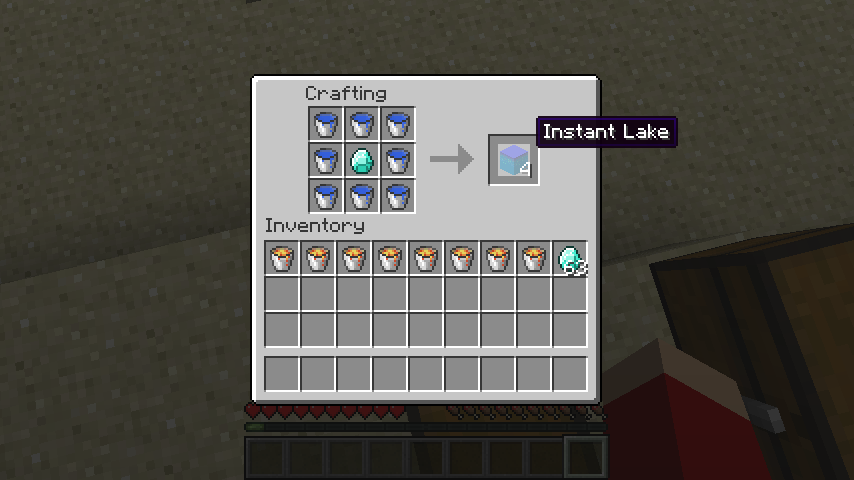 インスタント水源(Instant Lake)はダイヤモンド、水バケツ*8。