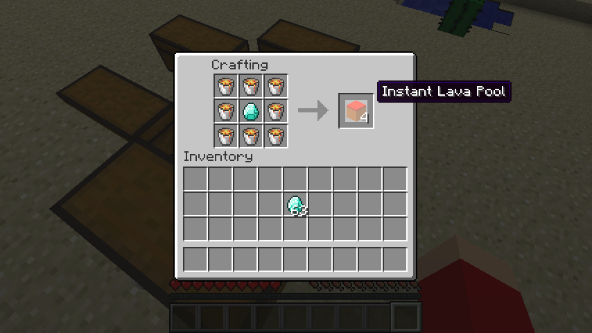 さて水があれば溶岩も、ということでインスタント溶岩源(Instant Lava)はダイヤモンド、溶岩バケツ*8。