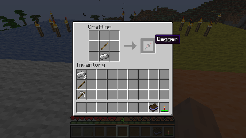 ダガー(Dagger)は木の棒、鉄インゴット。