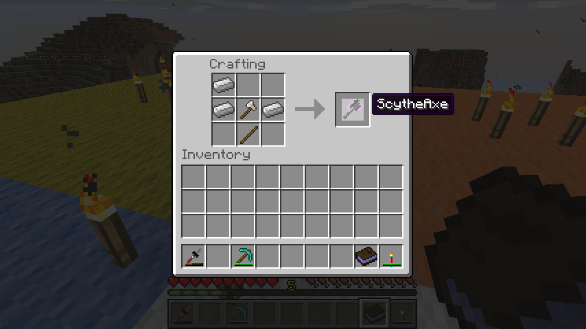 ScytheAxeのレシピは木の棒、鉄の斧、鉄インゴット*3。