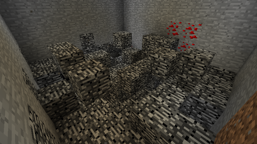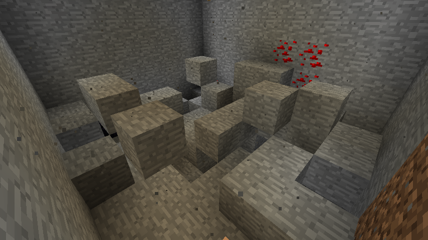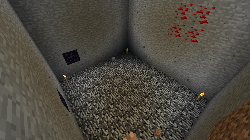 通常、世界の一番下は、Y=0が岩盤で埋め尽くされ、Y=1から4の範囲にもランダムで岩盤が設置されています。