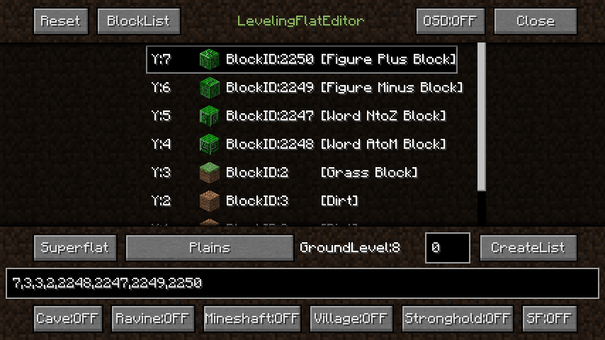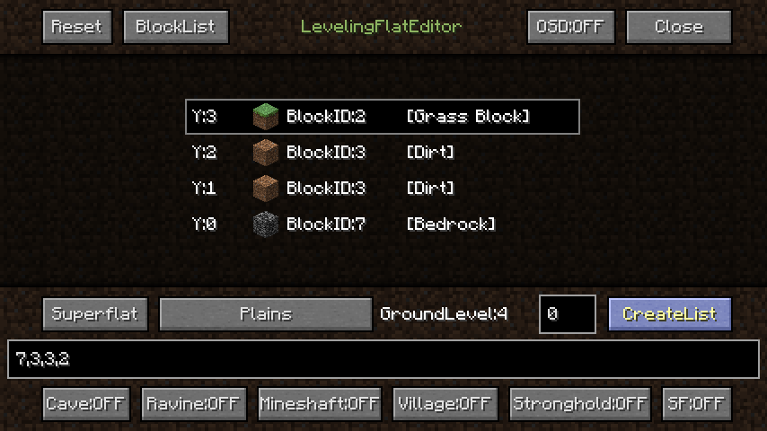 下の「7,3,3,2」の部分が、現在のスーパーフラットの生成規則です。