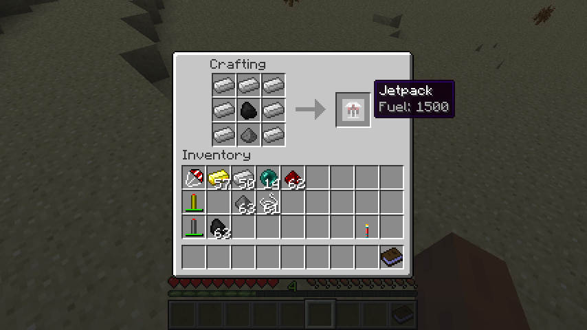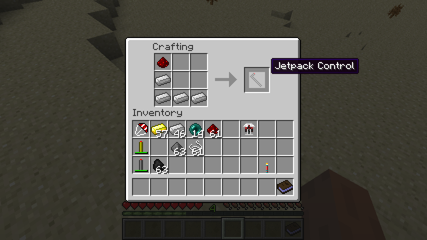 ジェットパックコントローラ(Jetpack Control)は鉄インゴット*4、レッドストーン。