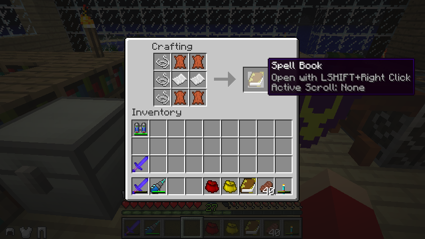 手に持ってShift+右クリックでインベントリが開き、これまでに作った魔法を収めることができます。