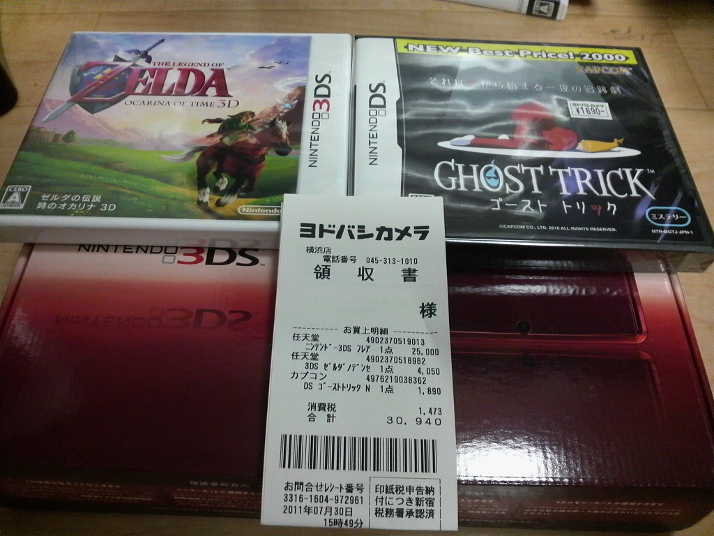 同時購入ソフトは言うまでもなくゼルダ、あと前から気になってたんですが買う機会がなかったゴーストトリックをついでに買ってきました。