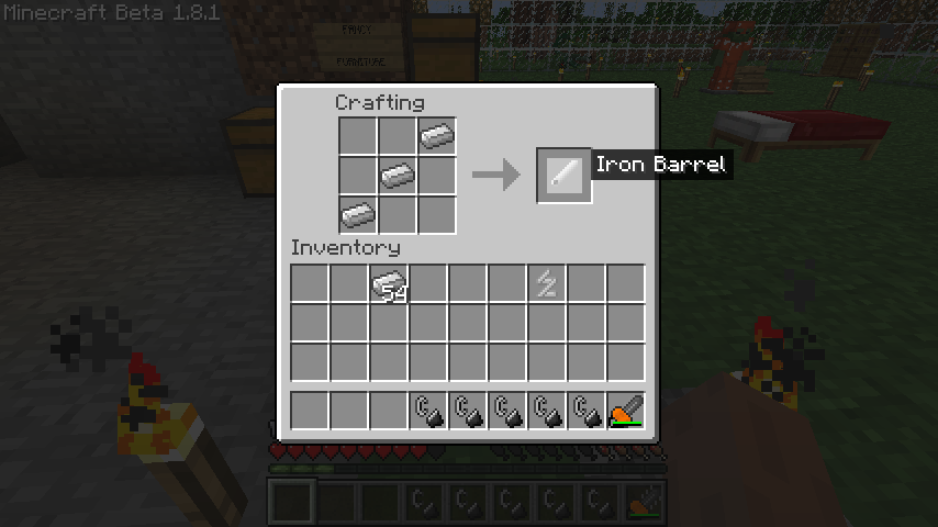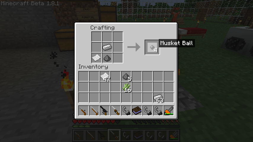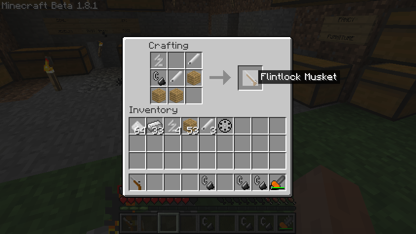 木材*3、火打ち石、スプリング、銃床*2でフリントロックマスケット(FlintLock Muslet)