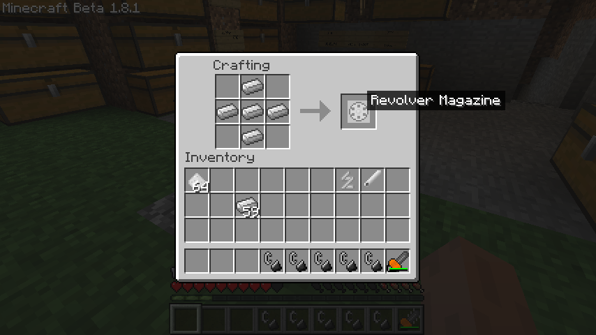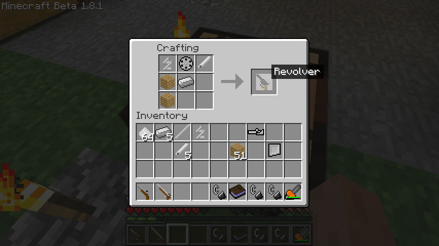 木材*2、鉄、リボルバーマガジン、スプリング、銃床でリボルバー(Revolver)