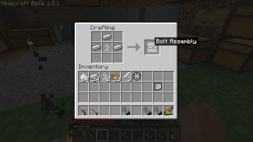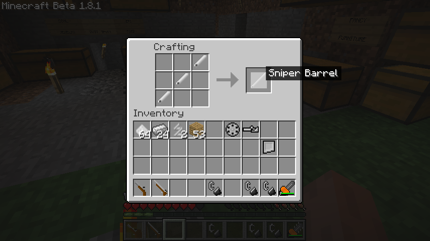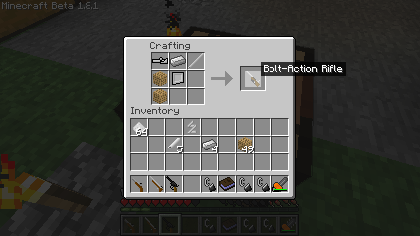 木材*2、鉄、Bolt Assembly、Rifle Magazine、Sniper Barrelでボルトアクションライフル(Bolt-Action Rifle)