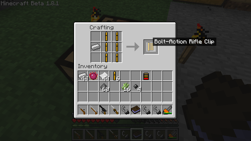 いずれも使い方としては、一度右クリックすることで弾薬を消費して銃に弾を込め、二回目以降のクリックで弾を発射します。
