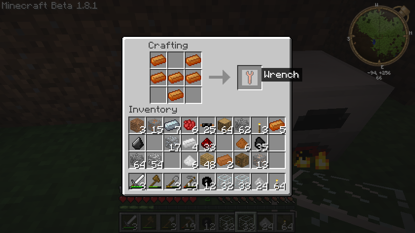 完成した青銅は、基本的に鉄のかわりとしてツールや防具に使用するとよいですが、6個使用するとレンチ(Wrench)が作成できます。