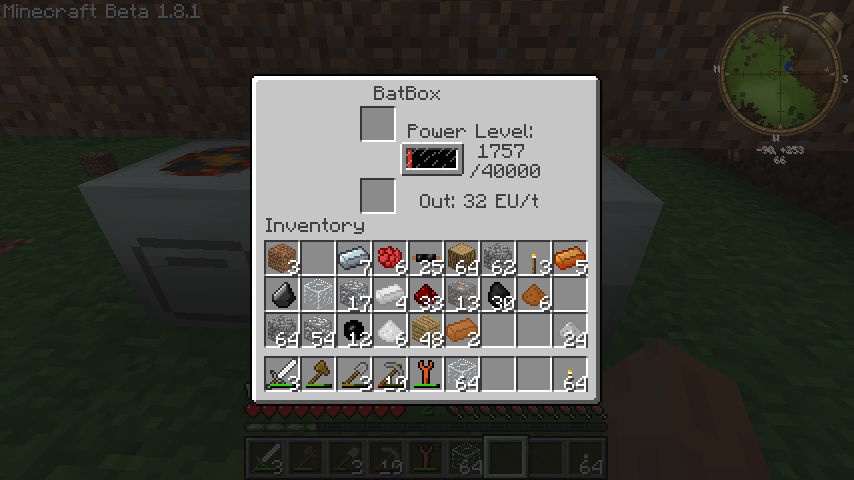 バットボックスの蓄電容量は40000EU、出力は32EUです。