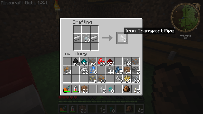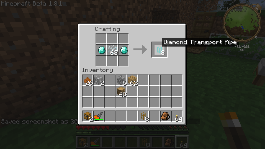 必要なのはダイヤモンドパイプ(Diamond Transport Pype)と鉄パイプ(Iron Transport Pype)。