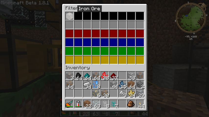 黒い部分に鉄鉱石や銅鉱石などを配置します。