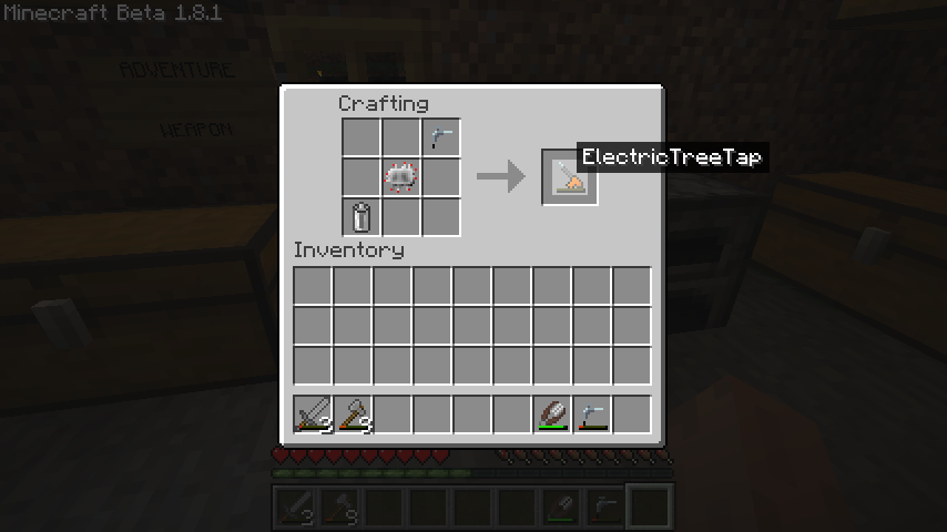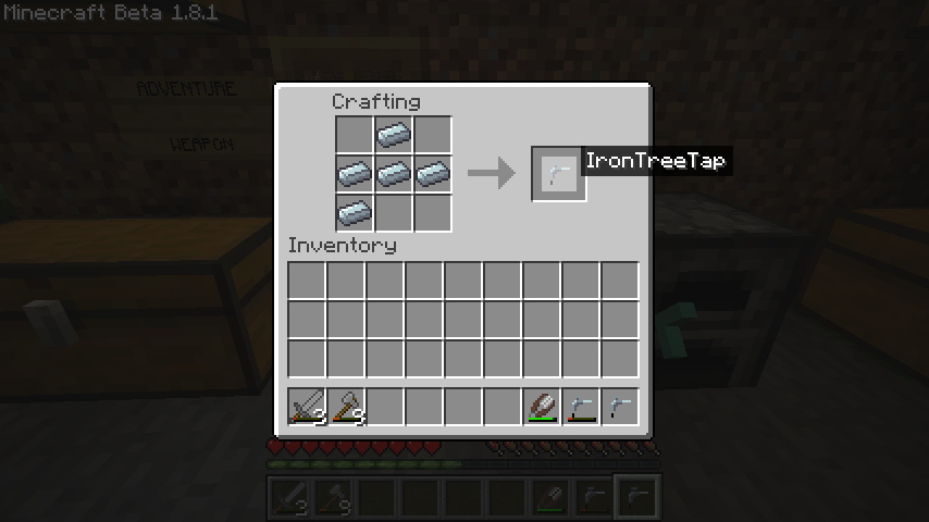 まず鋼鉄*5で鉄のツリータップ(IronTreeTap)が作成できます。