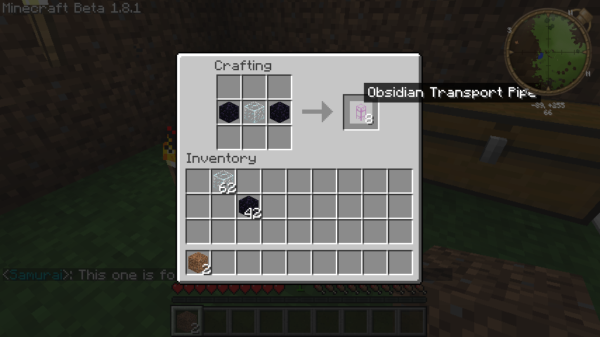 使用するのは黒曜石パイプ(Obsidian Pipe)と石エンジン(Steam Engine)。