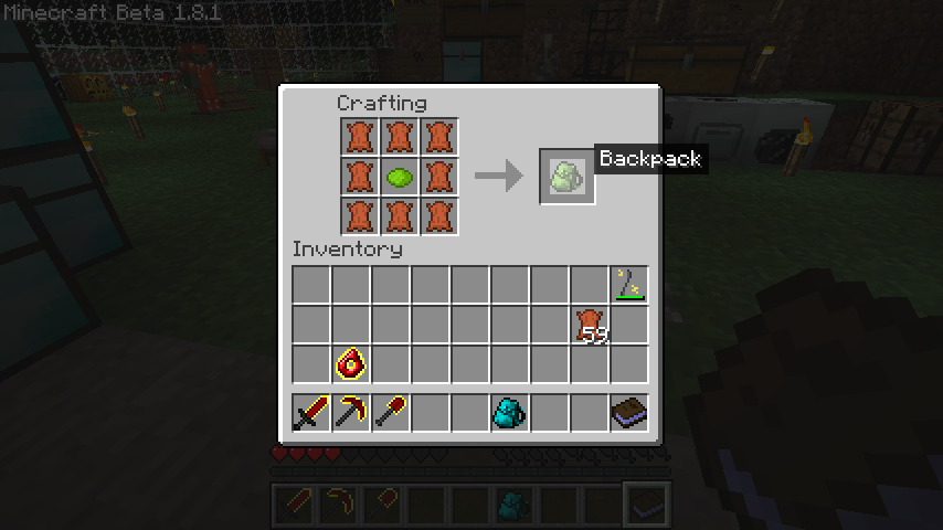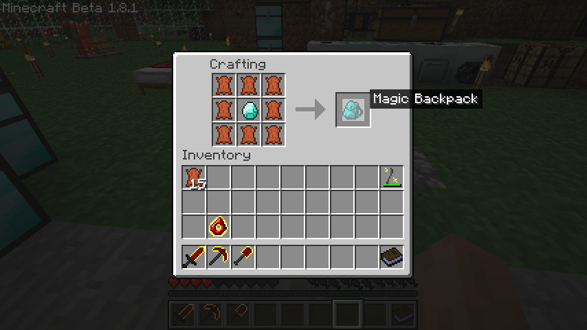 ちなみに、バックパックを作るときに、中央に染料のかわりにダイヤモンドを置くとマジックバックパック(Magic Backpack)が作成できます。