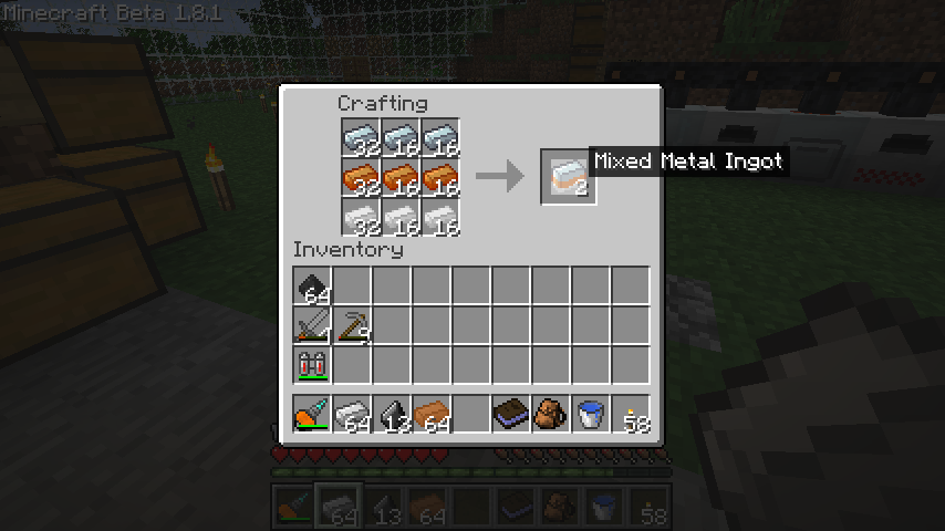 まず鋼鉄*3、青銅*3、スズ*3で合成したメタルインゴット(Mixed Metal Ingot)ができ、それを圧縮すると合金板(Advanced Alloy)になります。