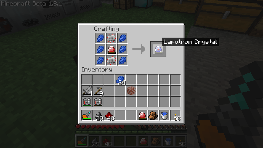 これは電子回路、レッドストーン*4、グロウストーンダスト*2、ラピスラズリ*2とカラフルなレシピとなっています。
