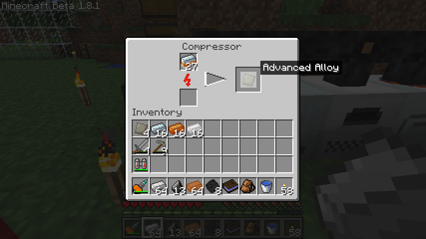 まず鋼鉄*3、青銅*3、スズ*3で合成したメタルインゴット(Mixed Metal Ingot)ができ、それを圧縮すると合金板(Advanced Alloy)になります。