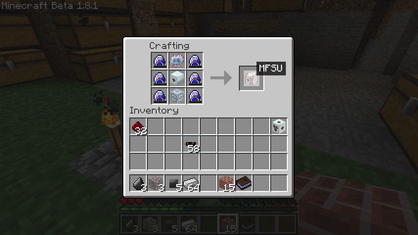 最後にMFEトランスミッタ+アドバンスドマシン+発展回路+ラポトロンクリスタル*6を組み合わせると、ようやくMFSユニット(MFSU)が完成です。