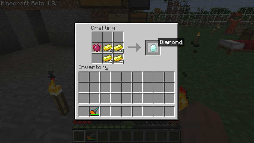 さらに賢者の石+鉄インゴット*4で金インゴットが、賢者の石+金インゴット*4でダイヤができます。
