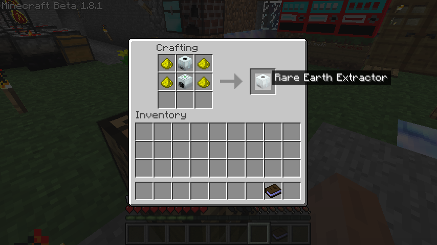 これに対してソウルサンド、黒曜石、粘土、ネザーラック、丸石の何れかを投入すると、希にレアアースダスト(Rare Earth Dust)が抽出されます。