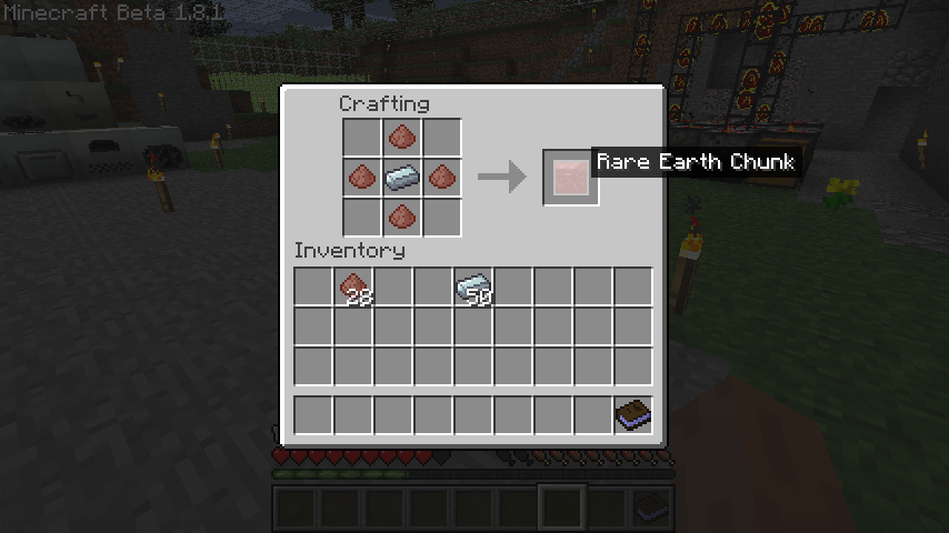 精錬鉄+レアアースダスト*4でレアアースの塊(Rare Earth Chunk)。