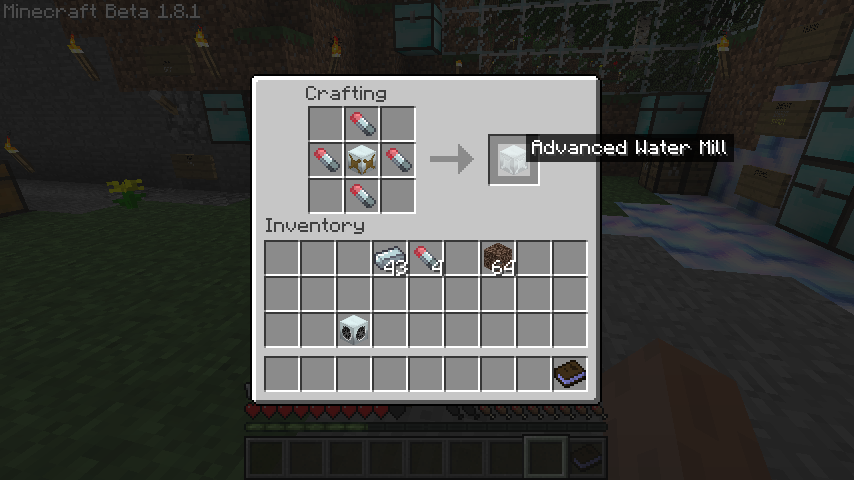 まず高等水力発電機(Advanced Water Mill)は水力発電機、磁石*4。