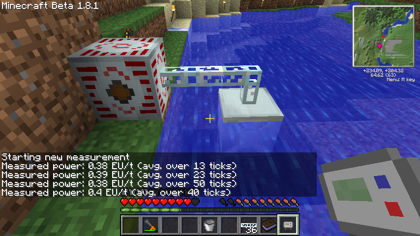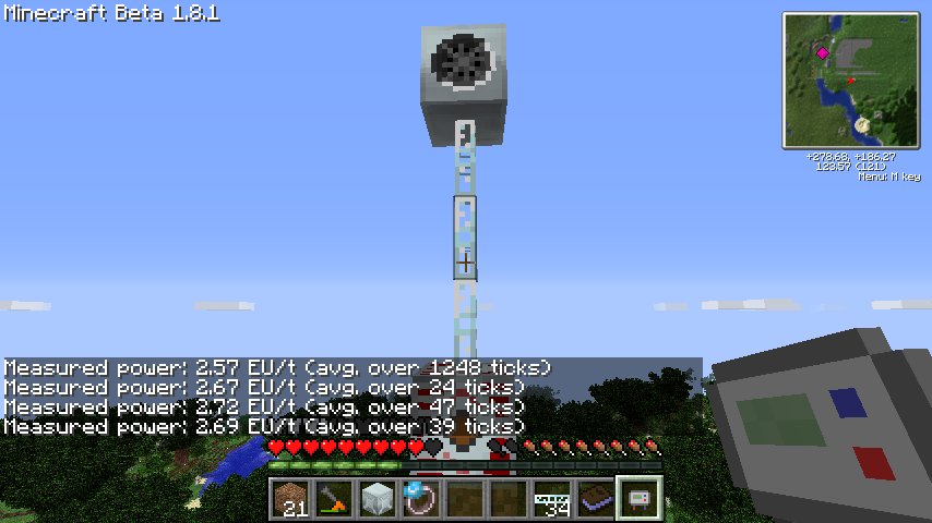 周囲を水で埋めることで、0.4EU/t程度で発電することが可能です。