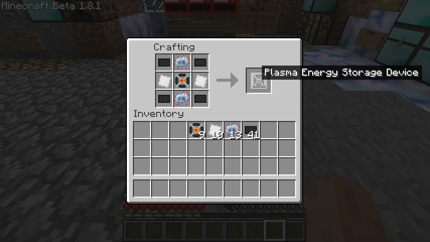用意したプラズマバキュームボトルとイリジウム*2、発展回路*2、合金板*4でプラズマエネルギー貯蔵デバイス(Plasma Energy Storage Device)が作れます。
