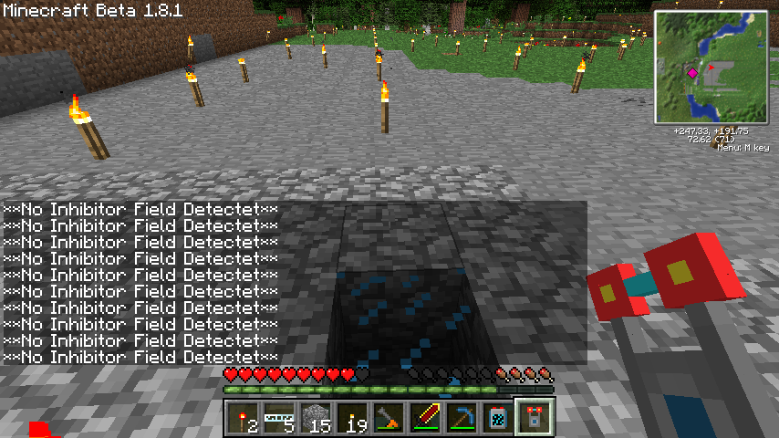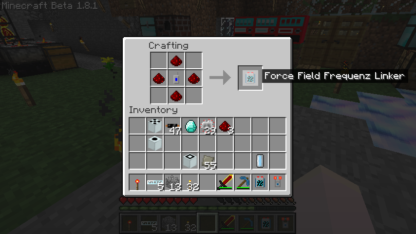 周波数送信機、レッドストーン*2でForce Field Frequenz Linker。