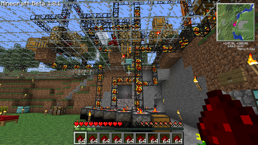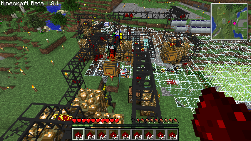 思いつくままに増設したので効率はそこまでよくないし、配線はなんだかひどいことになっていますが、1分で4個程度ダイヤブロックを生産する半永久機関です。
