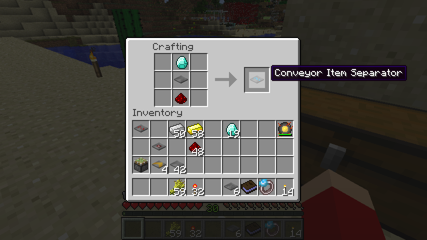 レシピはダイヤモンド、コンベアベルト、レッドストーン。