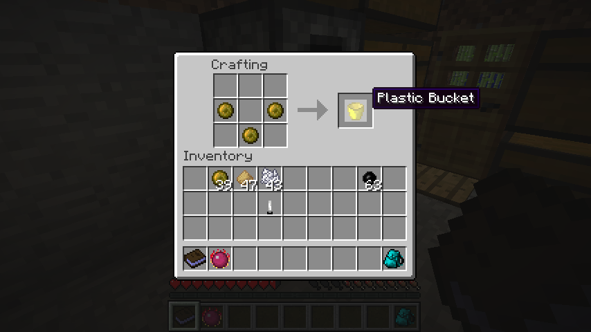 まずプラスチックボールを縦に三つ並べるとラテックス抽出機(Latex Extractor)、バケツ状に並べるとプラスチックバケツ(Plastic Bucket)ができます。