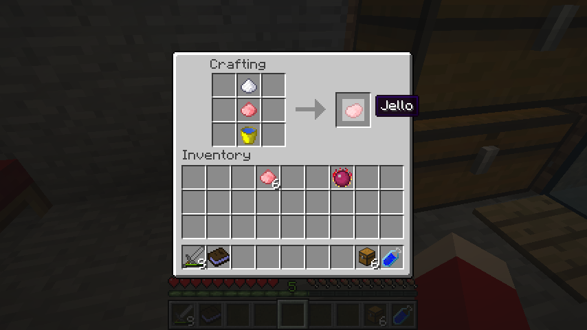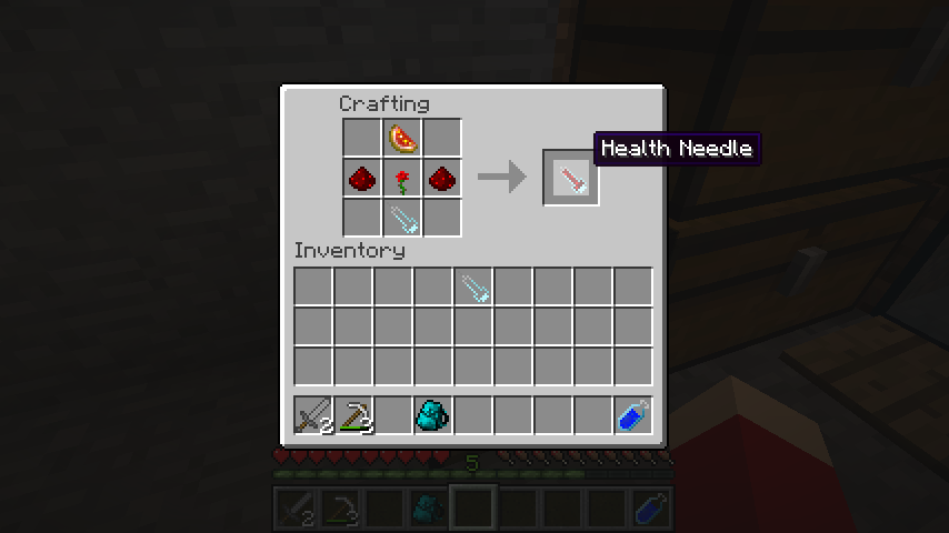 輝くスイカ、赤い花、レッドストーン*2、注射針で回復針(Health Needle)。