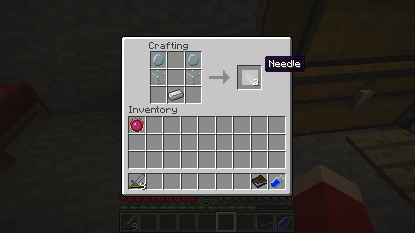 鉄インゴット、ガラス*2、透明プラスチックボール*2で注射針(Needle)ができます。