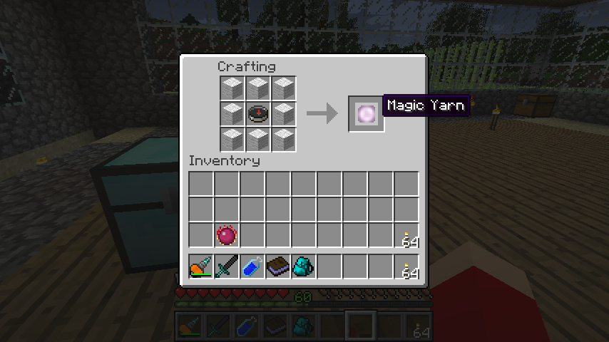 魔法の糸(Magic Yarn)のレシピはコンパス+羊毛*8。