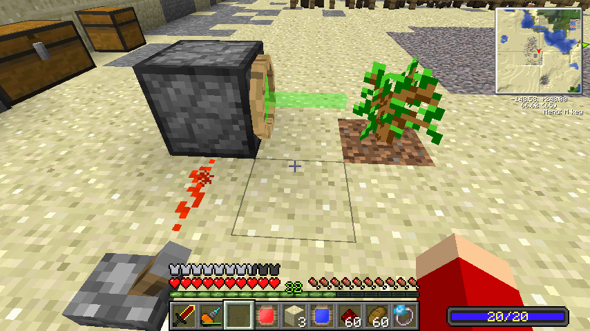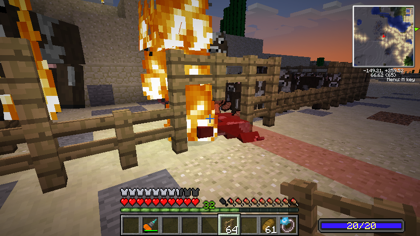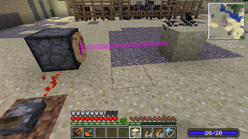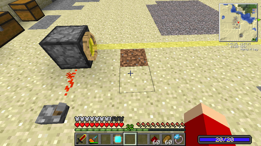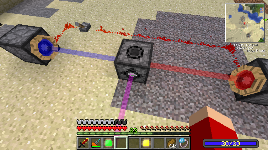 ちなみに赤レーザーはヒートビームで、当たったブロックを炎上・消滅させ、当たったモブも発火させます。