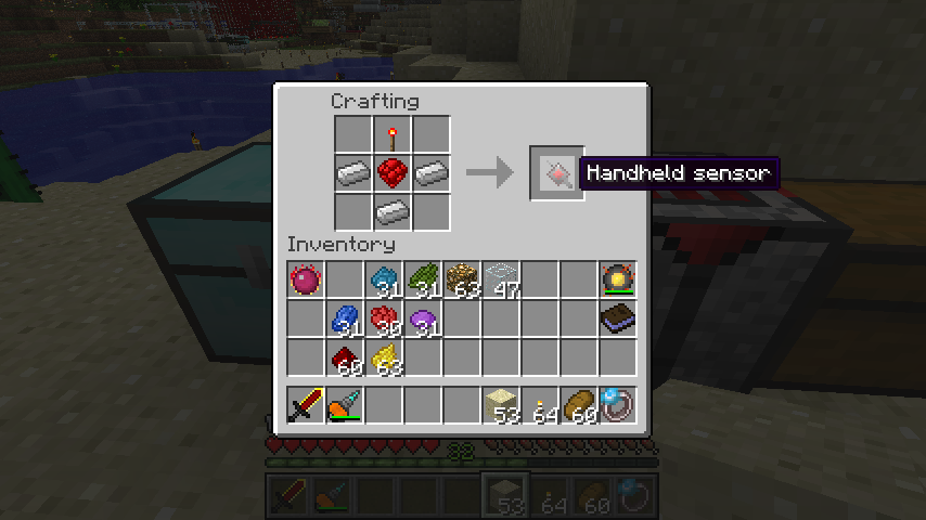 レシピはルビー、レッドストーントーチ、鉄インゴット*3。