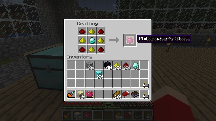賢者の石(Philosopher's Stone)はダイヤモンド、グロウストーンダスト*4、レッドストーンです。