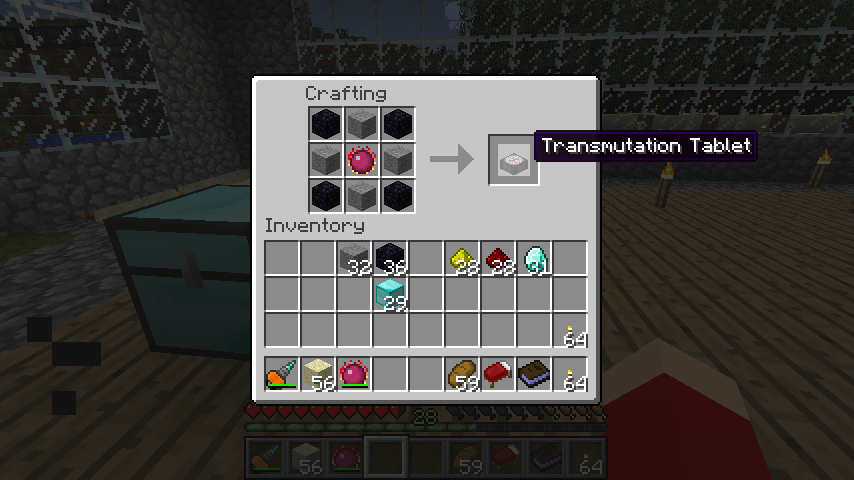 賢者の石、焼石*4、黒曜石*4で錬成板(Transmutation Tablet)ができます。