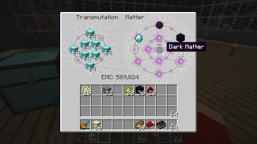これまでどおり指輪など上位アイテムの燃料源として使える他、錬成陣に使った場合、そのEMCをマターにも燃料にも変換可能です。